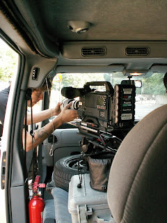 Note that Andy is wearing his reknown white t-shirt on set in the photo above. If you ever want to drive a cameraperson or DOP crazy, wear a bright reflective surface near the set, while moving around.